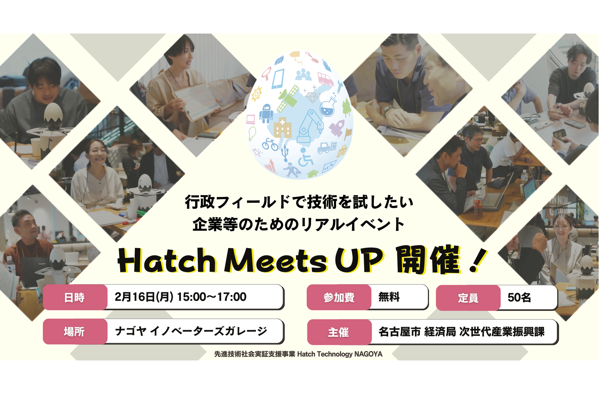 「Hatch Technology NAGOYA」フィールド活用型支援事業 ~行政フィールドで技術を試したい企業等のためのリアルイベント~ Hatch Meets UP!